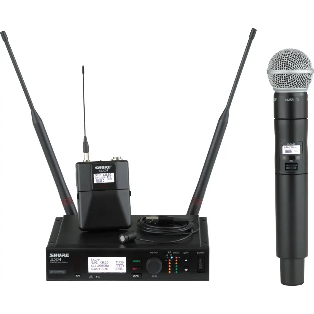 Shure ULXD is a high-quality wireless microphone system that offers exceptional sound quality, reliable operation, and advanced encryption features. With a transmission range of up to 330 feet and a battery life of up to 12 hours, this system is perfect for live performances, conferences, and other events where audio quality and reliability are critical. The ULXD system includes a variety of components, including handheld and bodypack transmitters, receiver units, and a range of accessories such as antennas and mounting hardware. The transmitter and receiver units are built to withstand the rigors of professional use, with rugged construction and advanced features such as automatic frequency scanning, gain adjustment, and channel selection. Whether you’re a musician, public speaker, or event organizer, the Shure ULXD wireless microphone system is an ideal choice for high-quality, reliable audio transmission. With its advanced features and exceptional performance, you can be confident that your message or music will be heard loud and clear.
