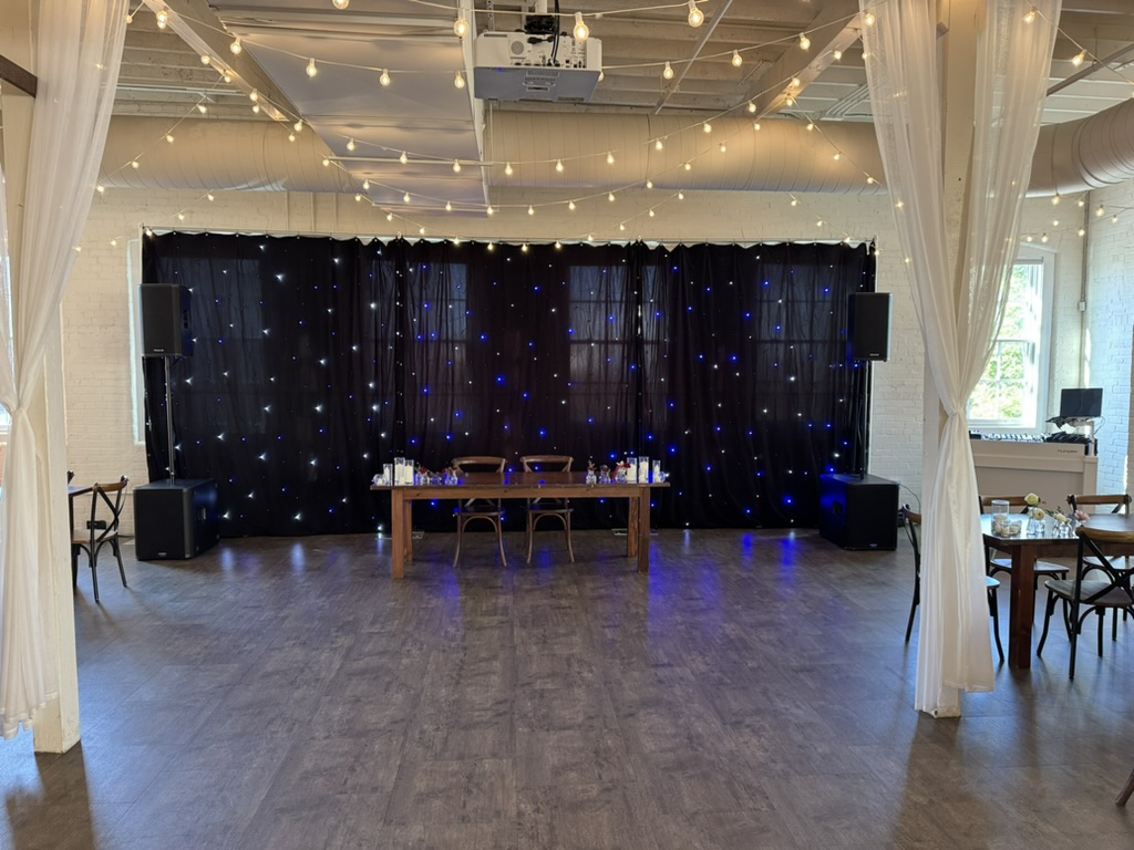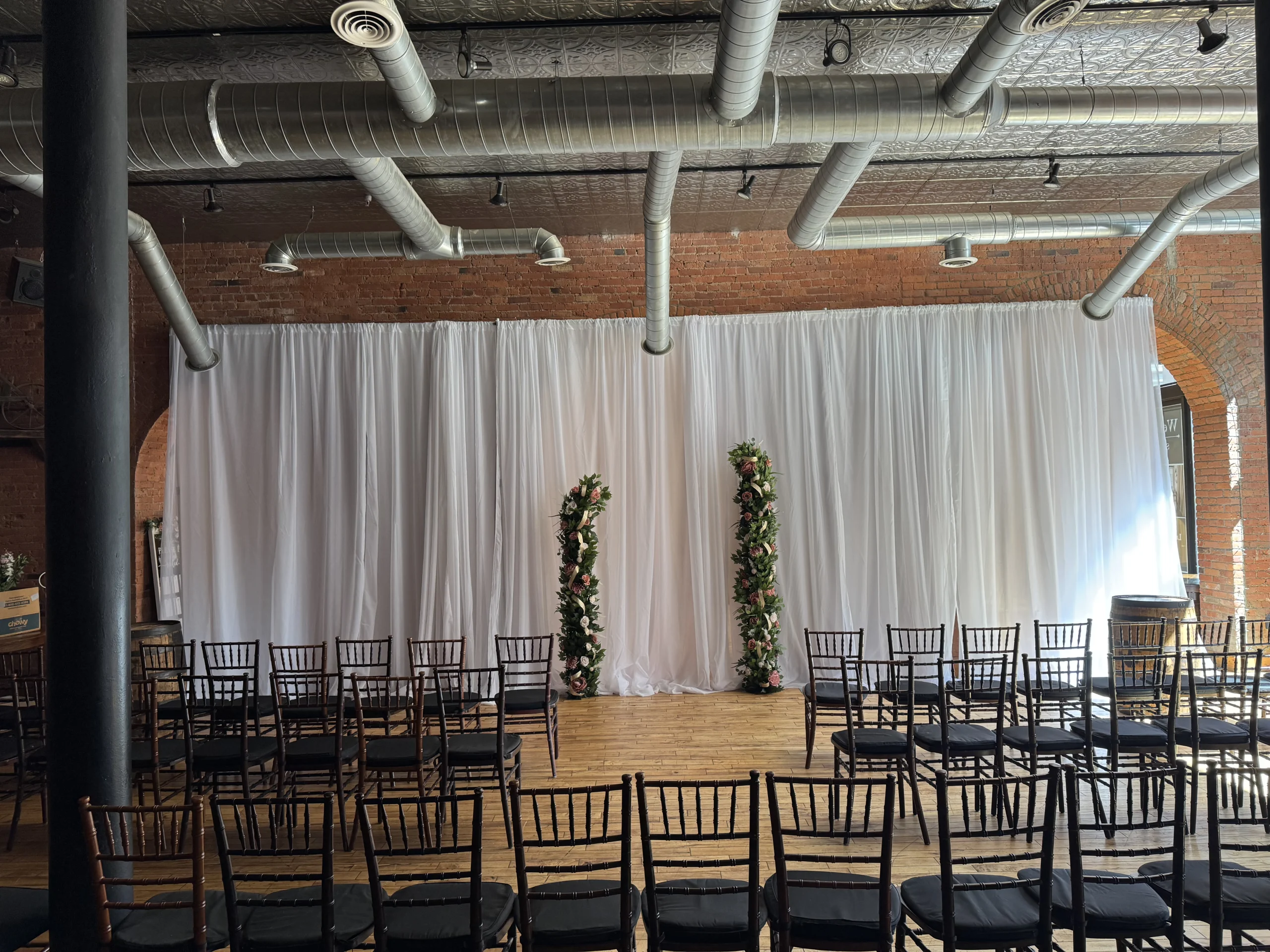 We offer pipe and drape in neutral colors that work across a wide range of events, and we plan height and width based on the space rather than forcing a standard setup.