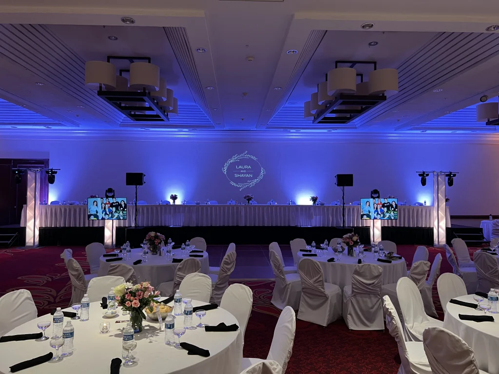 Accent lighting is about balance. Too little and the room feels empty. Too much and it feels busy. We plan accent lighting based on the venue layout, ceiling height, and guest flow — not just what looks good in isolation.