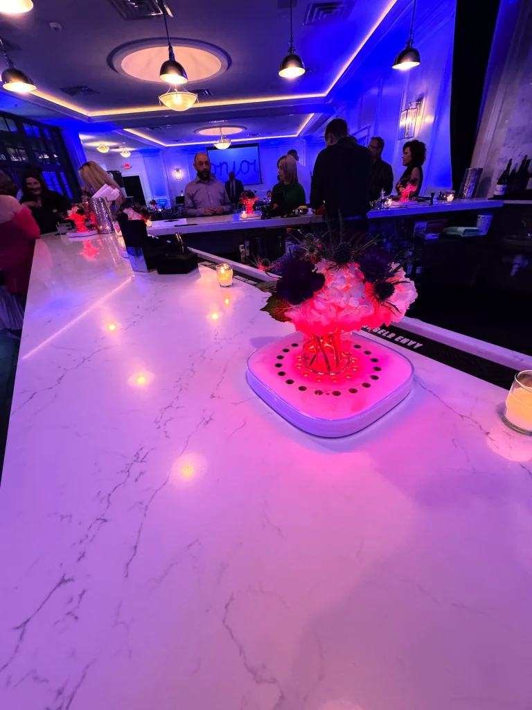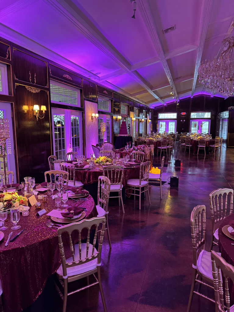 It’s used to highlight specific elements like cakes, centerpieces, sweetheart tables, or displays. The difference it makes is most noticeable in photos and video, where details suddenly stand out instead of blending into the room.