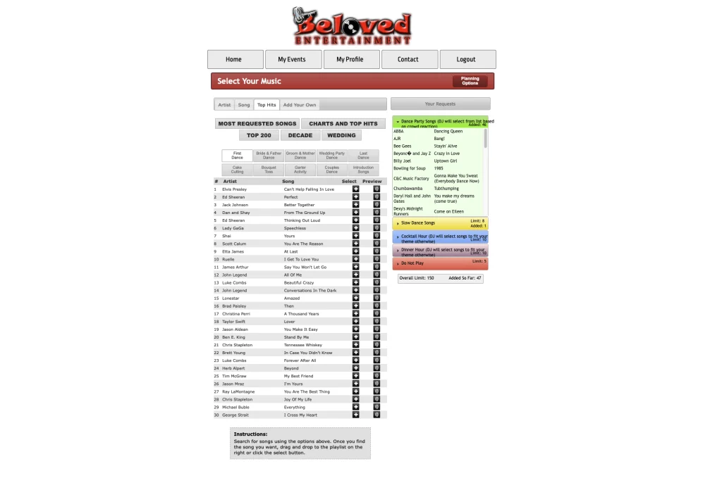 That’s why we give every couple access to our custom wedding planning portal. It’s where you can build playlists, request up to 150 songs, create a timeline, make payments, and share everything we need to know in one place. No scattered emails. No last-minute surprises.